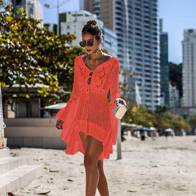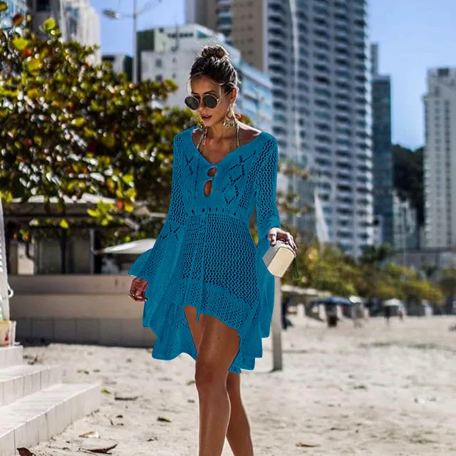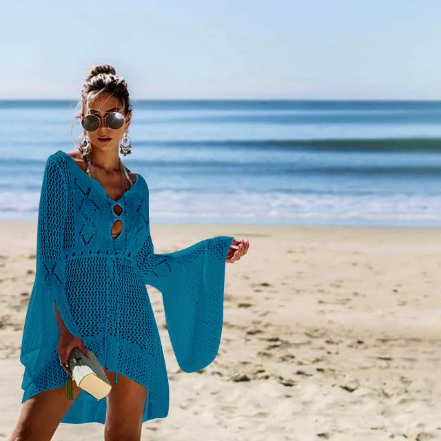 Sexy Cover Up Bikini Women Swimsuit Cover-up Beach Bathing Suit Beach Wear Knitting Swimwear Mesh Beach Dress Tunic Robe
